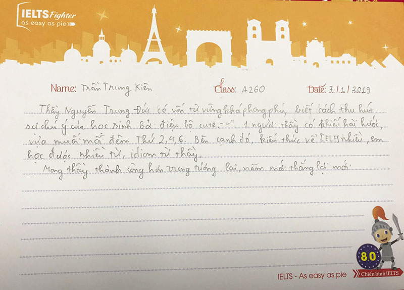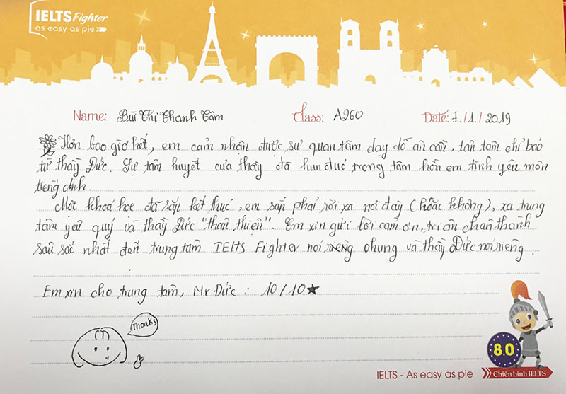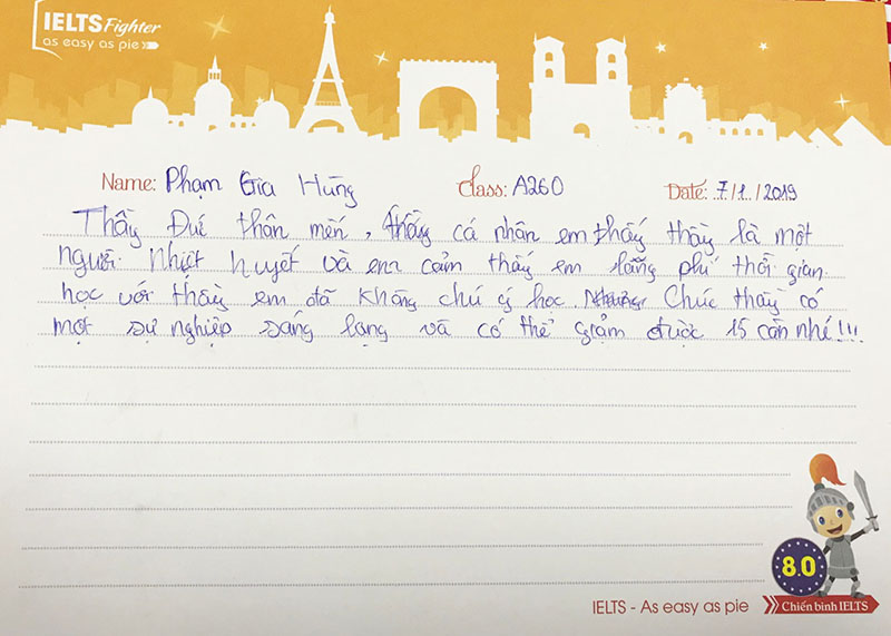 Gửi lời cảm ơn thầy Trung Đức, những tấm thư mang tâm sự ít nhiều được các bạn học viên đến thầy và IELTS Fighter.