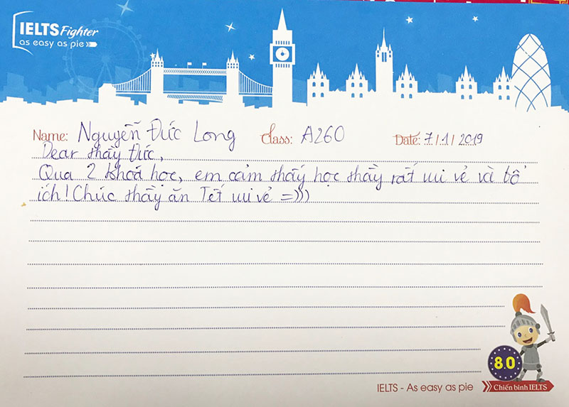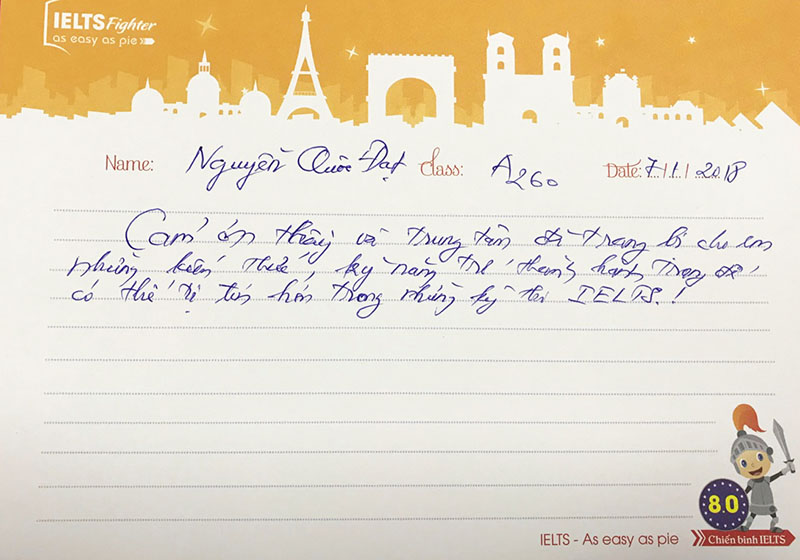 Mỗi lớp học tại IELTS Fighter qua đi thì những tình cảm vẫn còn ở lại. Cảm ơn các bạn học viên đã luôn tin tưởng IELTS Fighter là trung tâm luyện thi IELTS uy tín, chất lượng. Hy vọng các bạn sẽ đạt được điểm số IELTS như mong muốn trong tương lai!