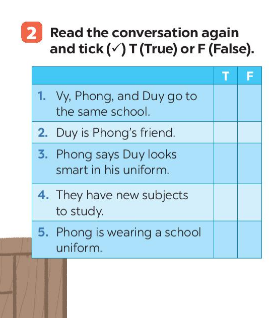 | 3. Phong says Duy looks smart in his uniform. | | |