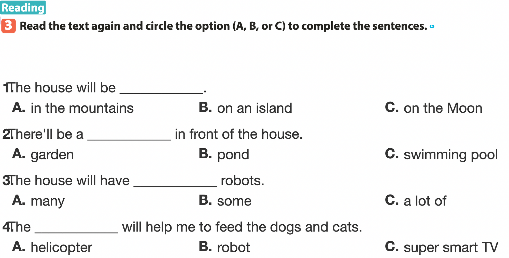 Bài 3. Read the text again and circle the option (A,B, or C) to complete the sentences.