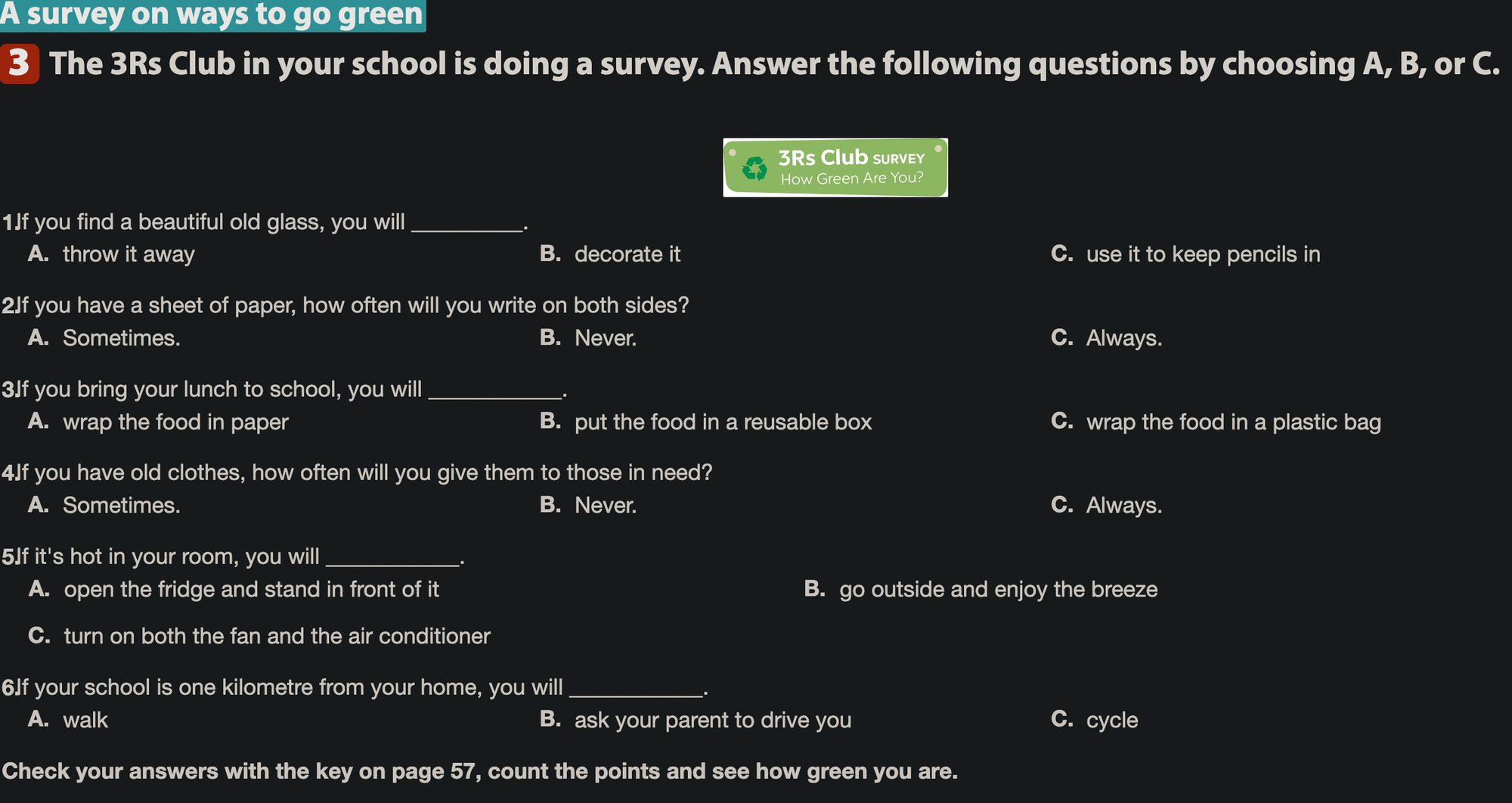 Bài 3. The 3Rs Club survey - How green are you?