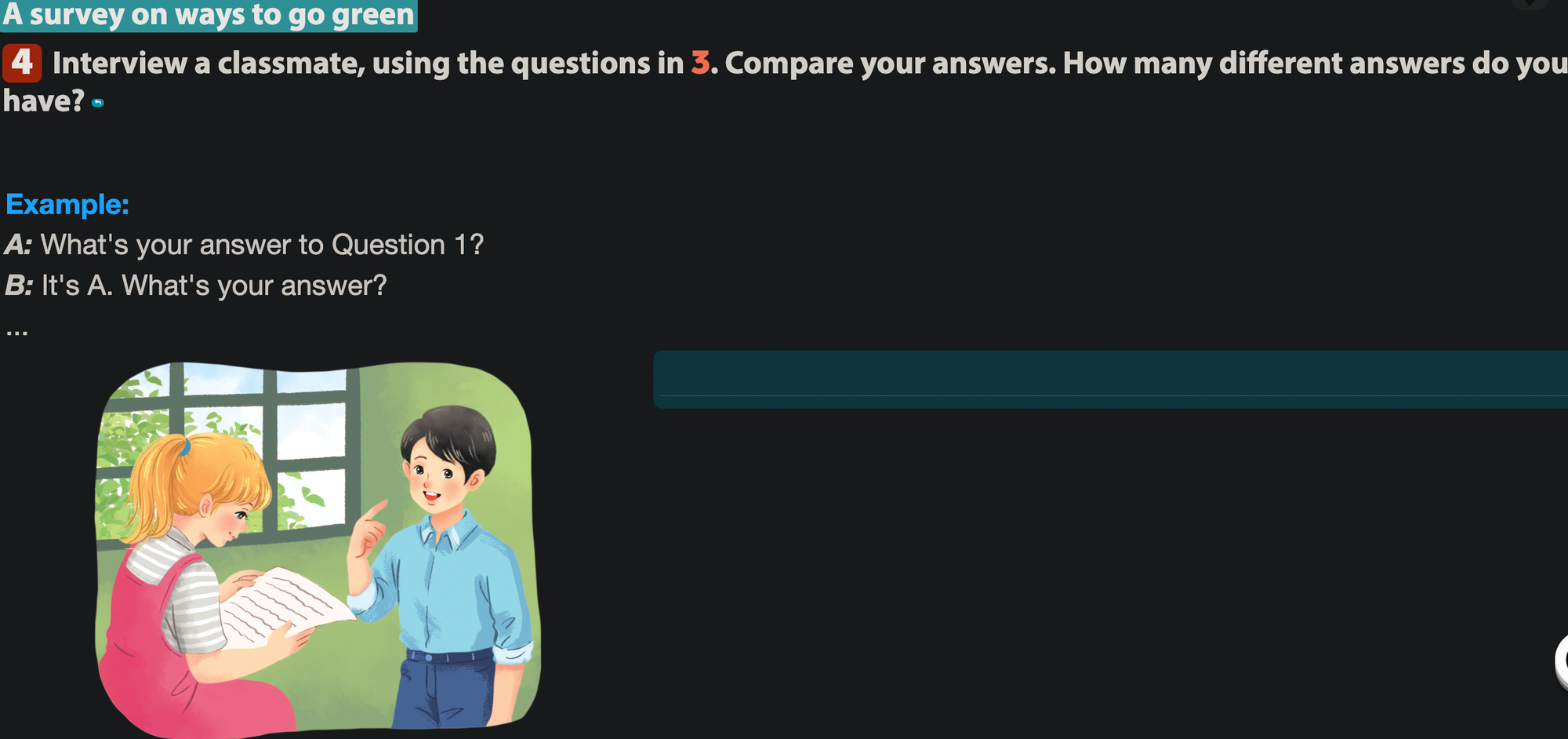 (Phỏng vấn một bạn cùng lớp, sử dụng các câu hỏi trong 3. So sánh các câu trả lời của bạn. Bạn có bao nhiêu câu trả lời khác nhau?)