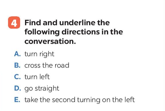 (Tìm và gạch chân những hướng dẫn chỉ đường sau trong đoạn hội thoại)