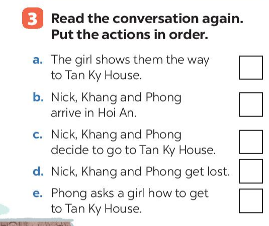 (Đọc lại đoạn hội thoại. Sắp xếp các hành động theo thứ tự