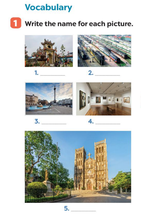 | 1. temple | 2. railway station | 3. square | 4. art gallery | 5. cathedral |