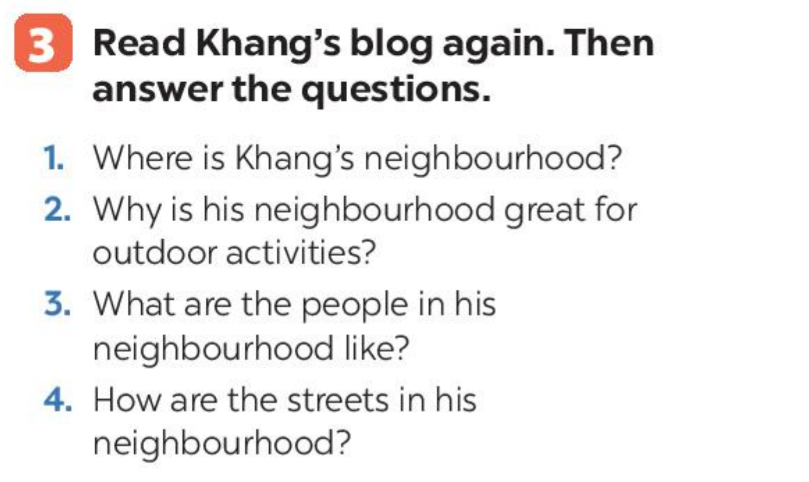 Bài 3. Read Khang’s blog again. Then answer the questions.