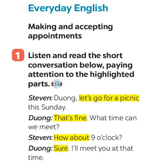 Bài 1: Listen and read the short conversation below, paying attention to the highlighted parts.