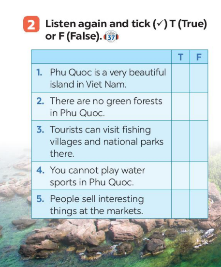 Bài 2. Listen and tick (✓) T (True) or F (False).