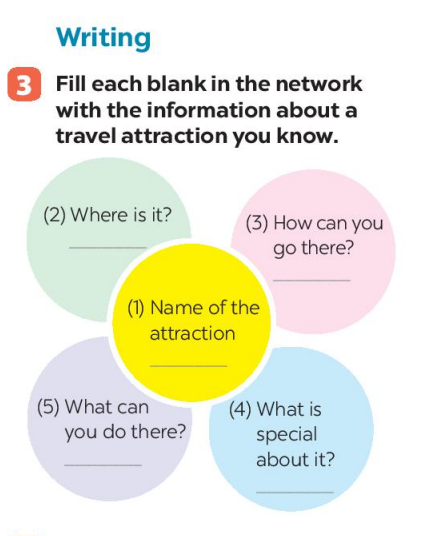 Bài 3. Fill each blank in the network with the information about a travel attraction you know.