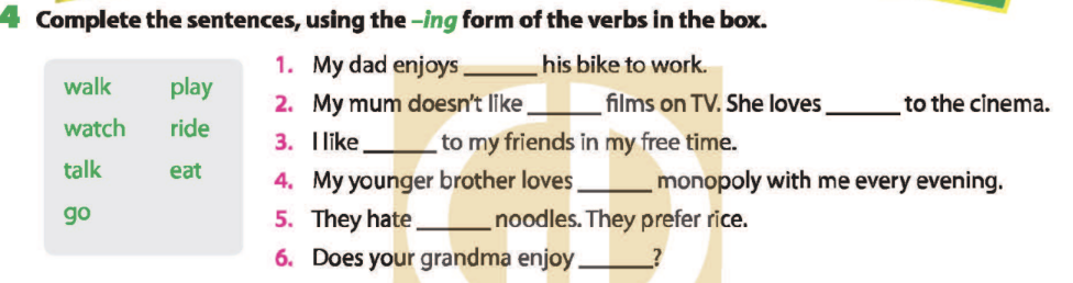Bài 4. Complete the sentences, using the -ing form of the verbs in the box.