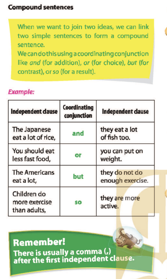 Bài 4. Make compound sentences by joining the two simple sentences. Use the conjunction given. Remember to add a comma.