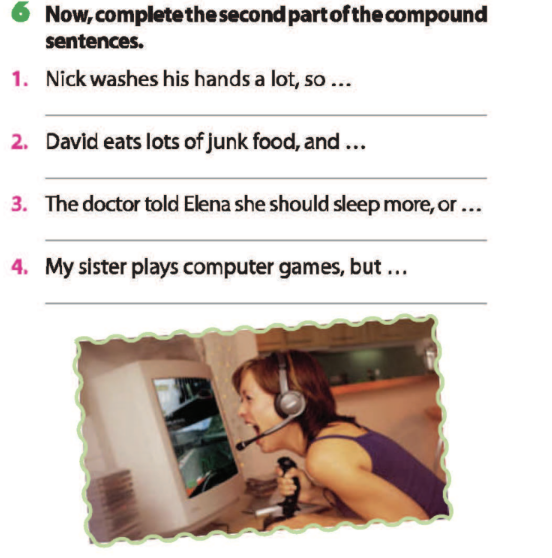 Bài 6. Complete the second part of the compound sentences.