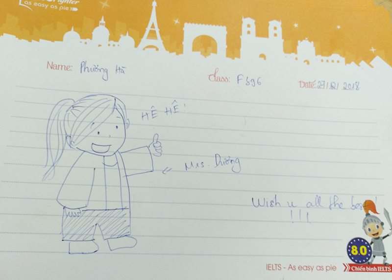 Phương Hà: " Ms.Dương, wish you all the best!" Bạn Hà còn vẽ hình minh họa của Ms.Dương vừa cute vừa độc đáo ấn tượng thế đấy!!!