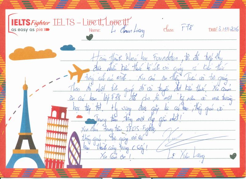 Xin chúc trung tâm IELTS Fighter, thầy giáo, trợ giảng và các bạn thành công trong cuộc sống!