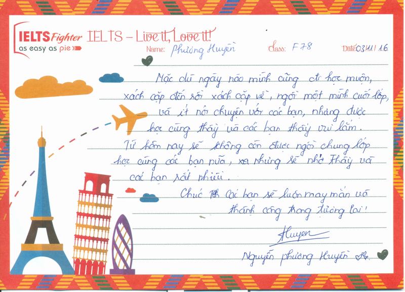 Tuy không còn tiếp tục học lên lớp khác của trung tâm nhưng mình luôn mong trung tâm sẽ mãi và luôn luôn giúp đỡ các bạn học sinh, sinh viên trong công cuộc chinh phục IELTS. Hehe, ahihi.