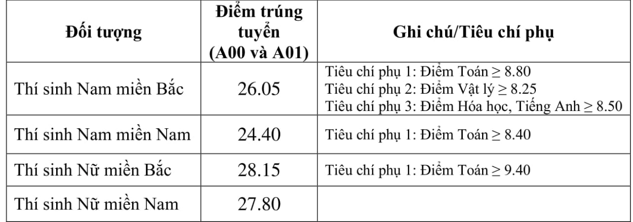 Tiêu chí 2: Trong trường hợp xét xong tiêu chí 1 mà vẫn còn chỉ tiêu, trường sẽ xét đến tiêu chí 2: Thí sinh có điểm thi môn Lý cao hơn sẽ trúng tuyển.