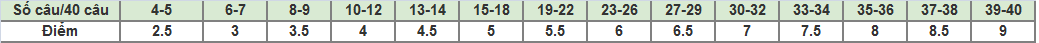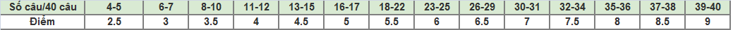 Phần Reading (Tính số câu đúng trên tổng số 40 câu)