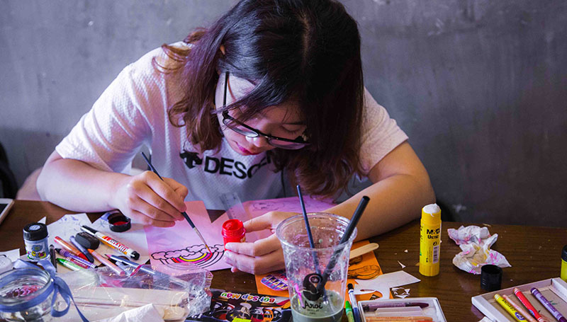 Các bạn tự làm đồ handmade thú vị. Ai cũng say mê và hào hứng với không gian nghệ thuật này