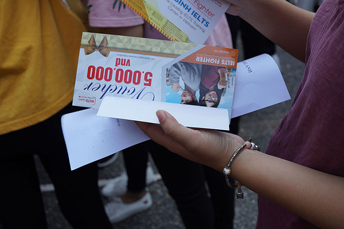 IELTS Fighter đồng hành cùng ngày hội với tư cách là Nhà tài trợ Bạc đã đem đến cho các bạn những chia sẻ hữu ích về IELTS, tư vấn miễn phí cùng các phần quà hấp dẫn. Đó là Voucher 5 triệu đồng, Voucher 500 nghìn đồng và 300 nghìn đồng dành tặng cho các bạn khi đăng ký khóa học tại trung tâm thời gian tới.
