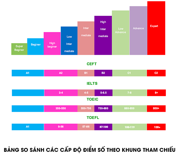 Điểm IELTS, TOEFL, TOEIC quy theo khung tham chiếu Châu Âu tương đối
