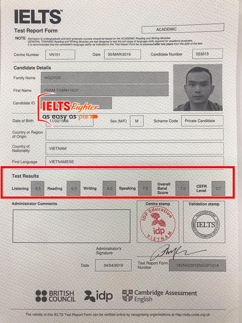 Vì thế, bạn quyết định tham gia học tại IELTS Fighter. Và sau thời gian học tập, Huy đã hoàn thành mục tiêu với điểm số 7.0 IELTS trong đó Speaking đạt 7.5 đấy.