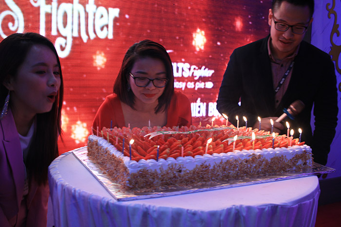 Ms. Giang và Ms.Hoa cùng đại diện IDP cắt bánh mừng sinh nhật IELTS Fighter