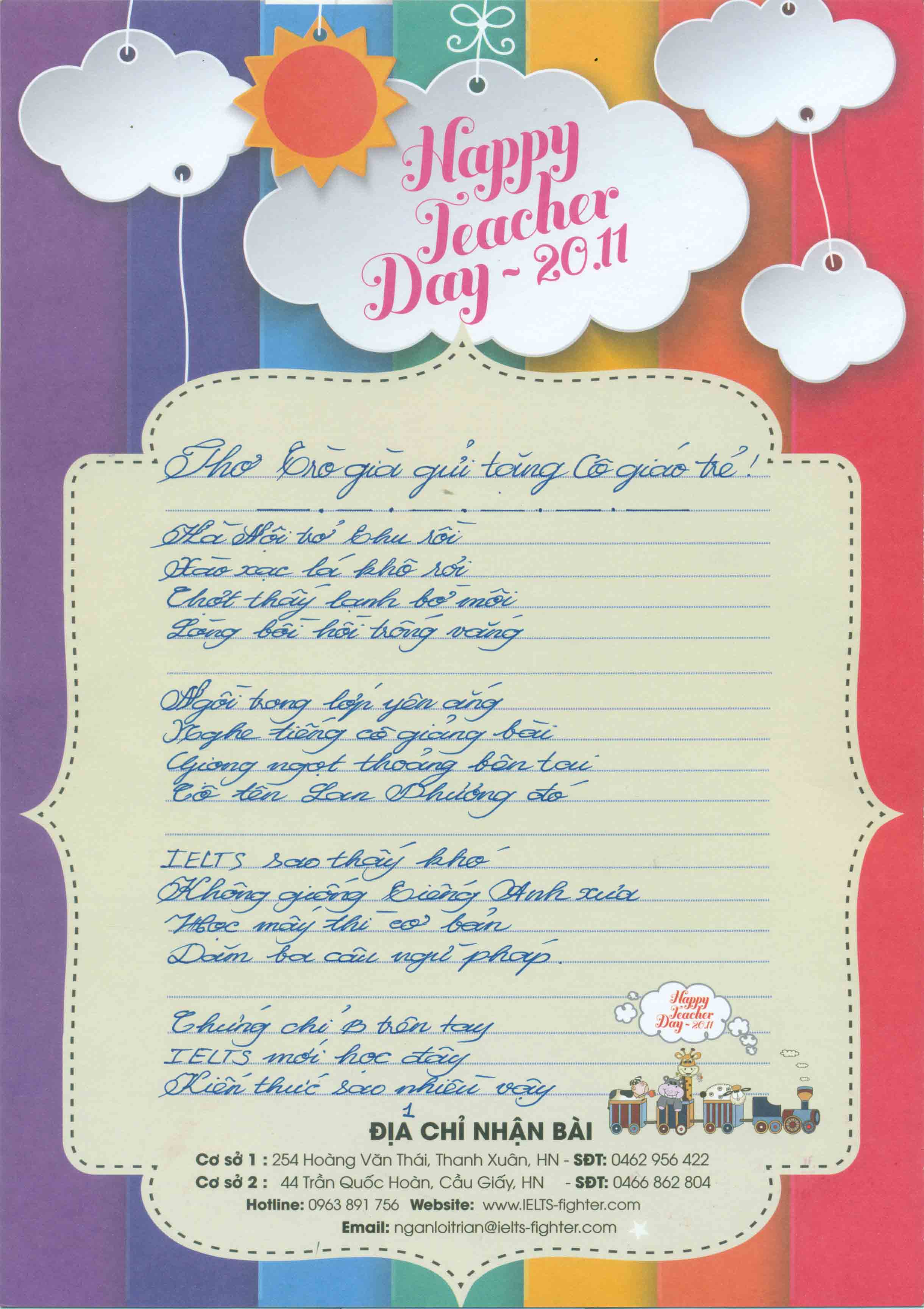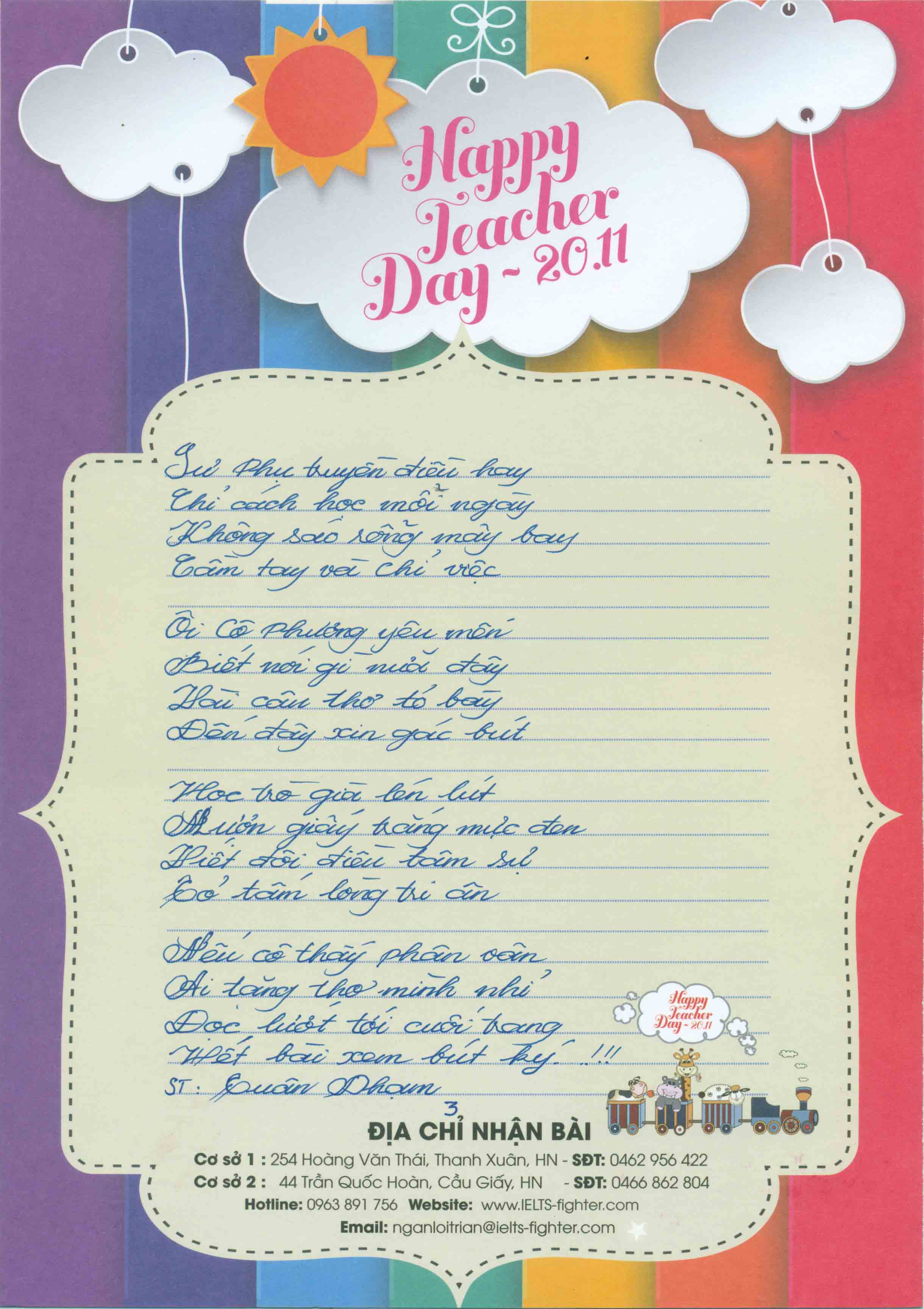Chi tiết thể lệ và giải thưởng xem tại: https://ielts-fighter.com/tin-tuc/Cuoc-thi-34-Ngan-loi-tri-an-2017-34-Chao-mung-ngay-Nha-giao-Viet-Nam-20-11_mt1509461191.html