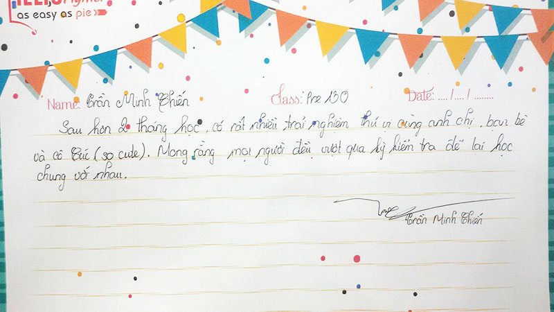 Trong suốt thời gian học tại trung tâm, em có rất nhiều trải nghiệm thú vị cùng anh chị, bạn bè và cô Cúc. Mong rằng các lớp sau sẽ cùng học chung để có thêm nhiều trải nghiệm thú vị.
