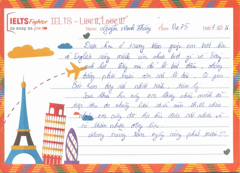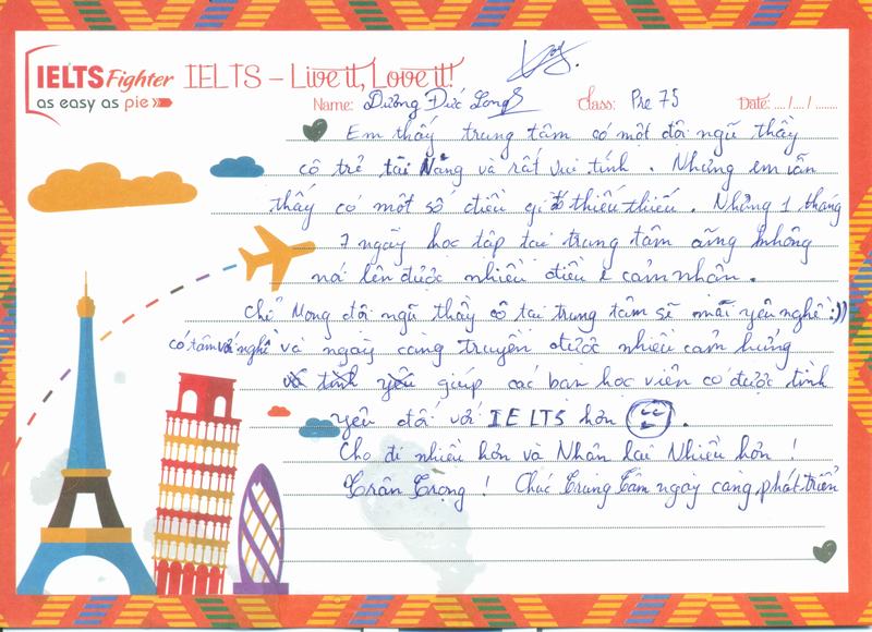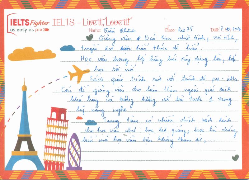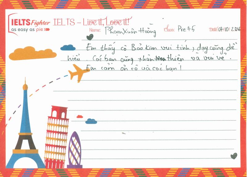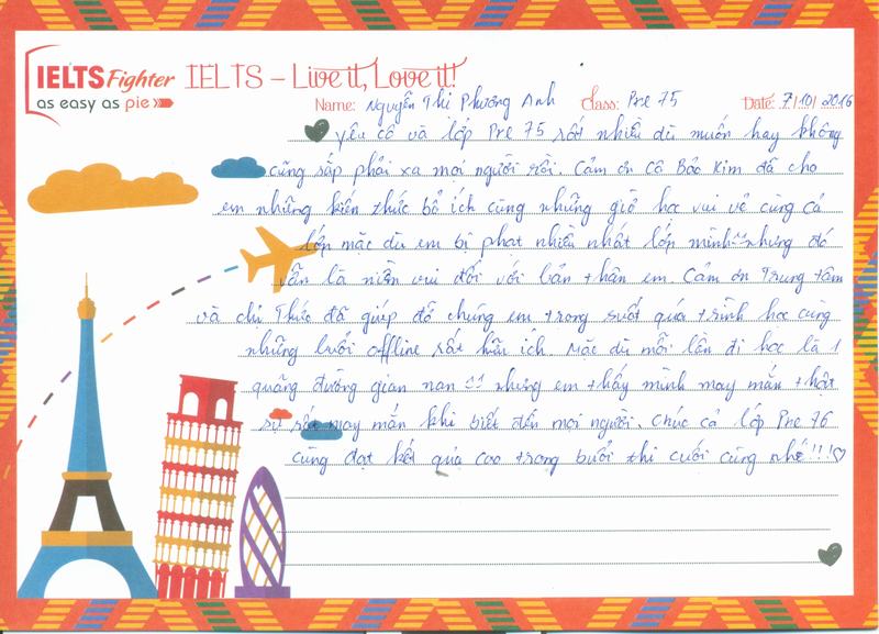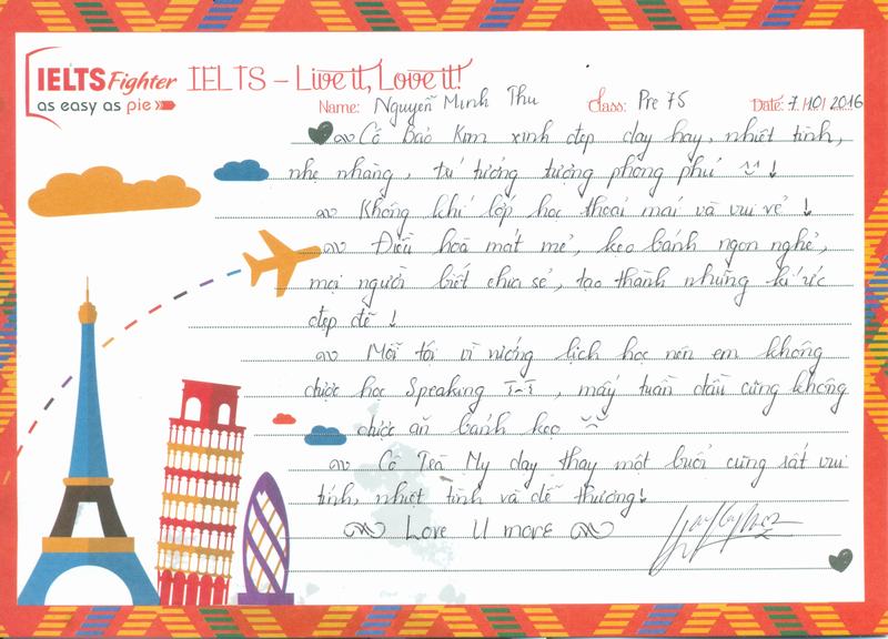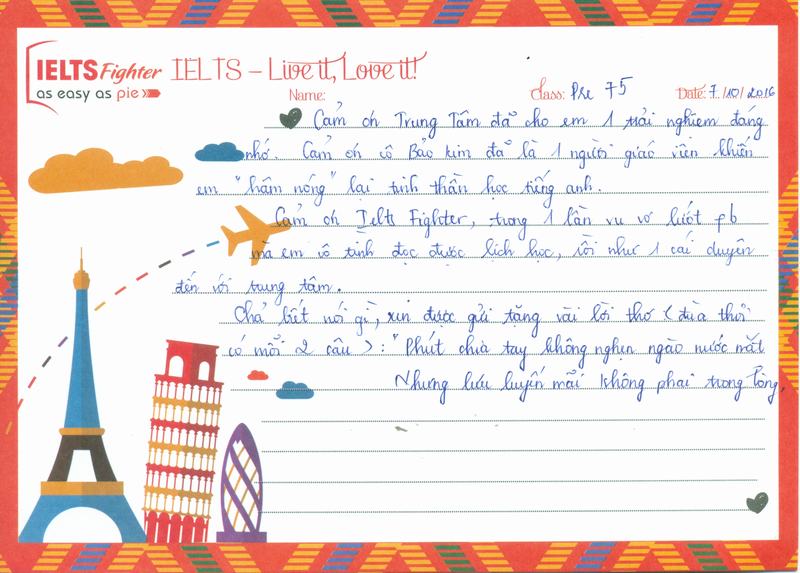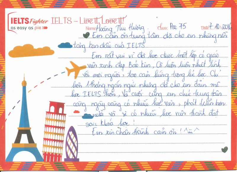 Cảm ơn IELTS Fighter, trong 1 lần vu vơ lướt fb mà em vô tình đọc được lịch học, và rồi nhiw 1 cái duyên đến với trung tâm.