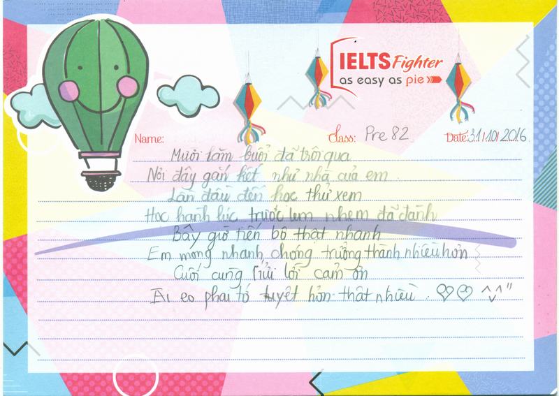 Đây là những vần thơ rất ngẫu hứng của một bạn học viên (quên ghi tên rồi ^^) gửi tới cô giáo và IELTS Fighter. Các chiến binh của cô không những tình cảm, mà còn rất tài năng nữa các em nhỉ? <3