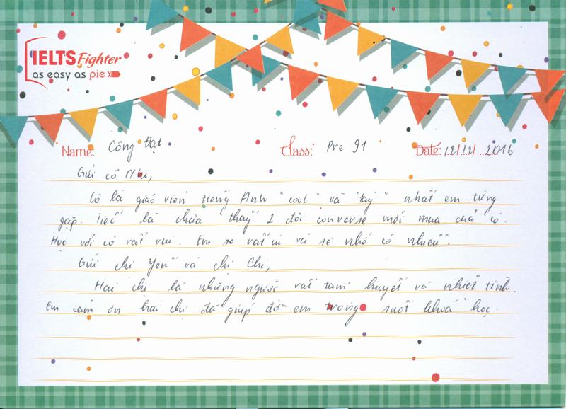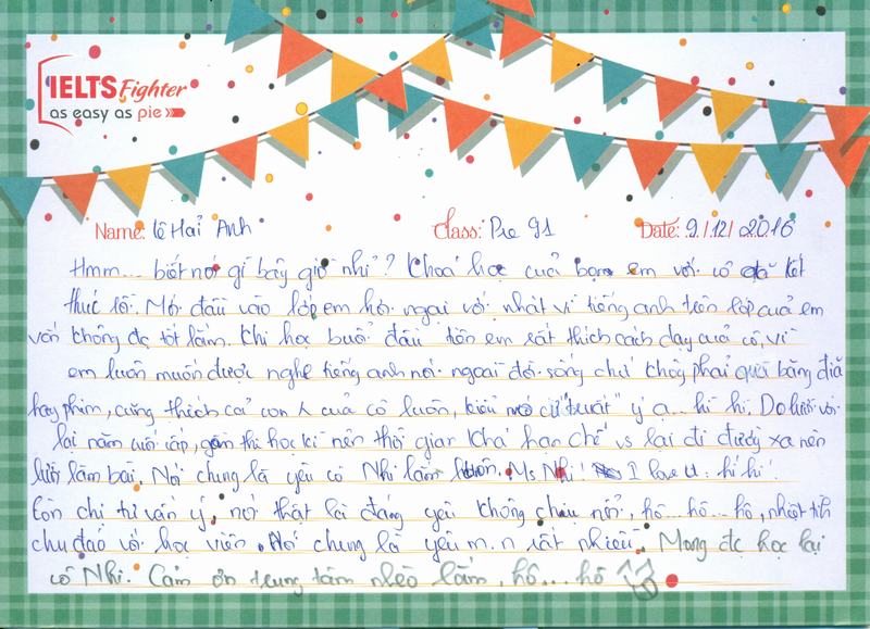 Hãy cùng IELTS Fighter lắng nghe xem các bạn ấy chia sẻ gì về cô giáo, về các bạn cùng lớp và về trung tâm nhé!