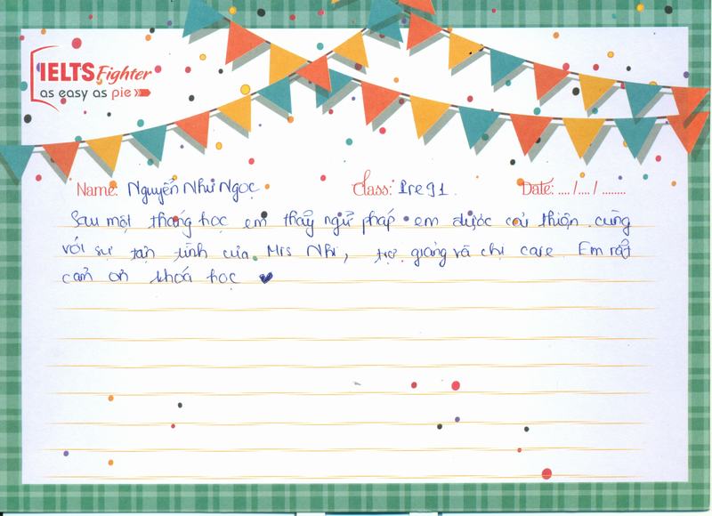 Sau một tháng học em thấy ngữ pháp em được cải thiện cùng với sự tận tình của Ms Nhi, trợ giảng và chị care. Em rất cảm ơn khóa học <3