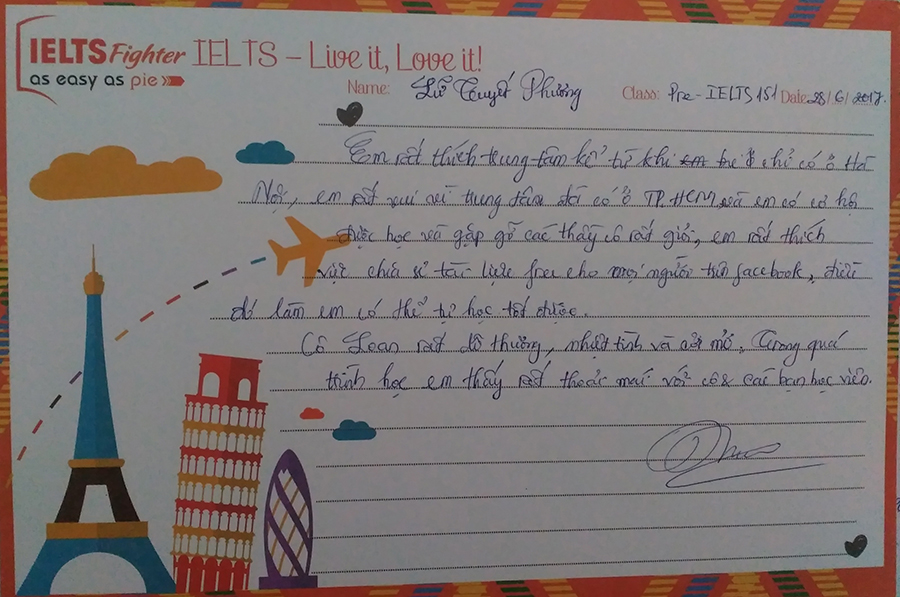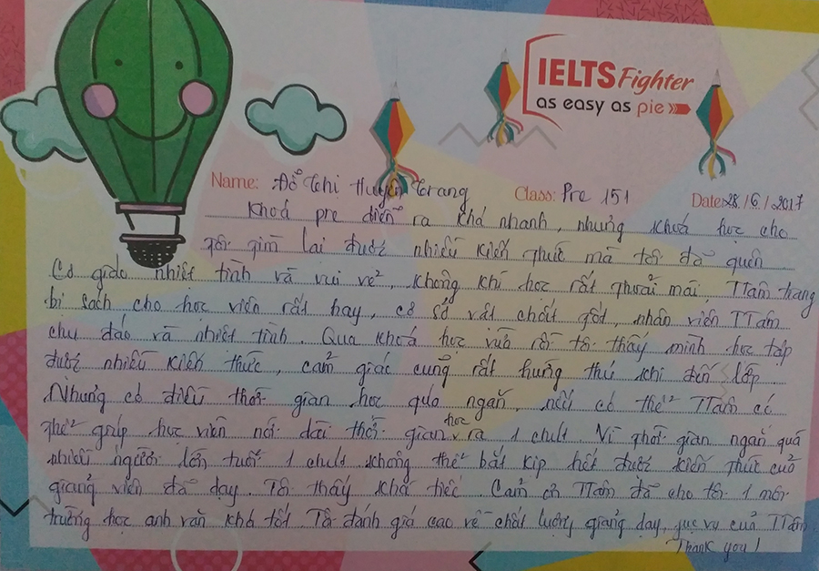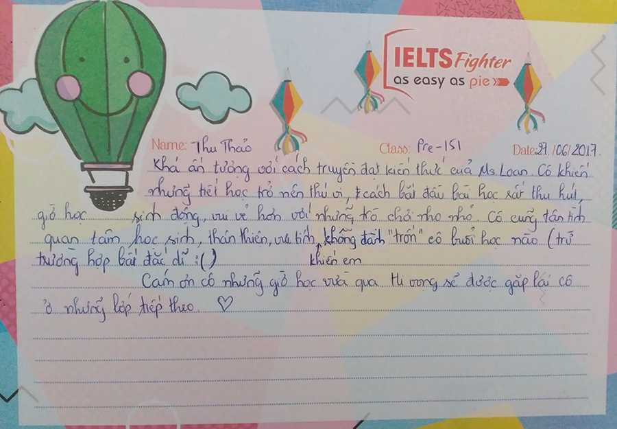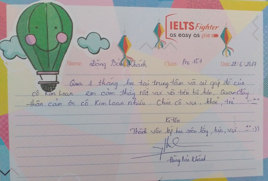 IELTS Fighter cám ơn các em đã lựa chọn Trung tâm và đội ngũ chiến binh nhiệt huyết với tình yêu tiếng Anh luôn rực cháy là người bạn đồng hành trên con đường chinh phục những nấc thang điểm số IELTS!
