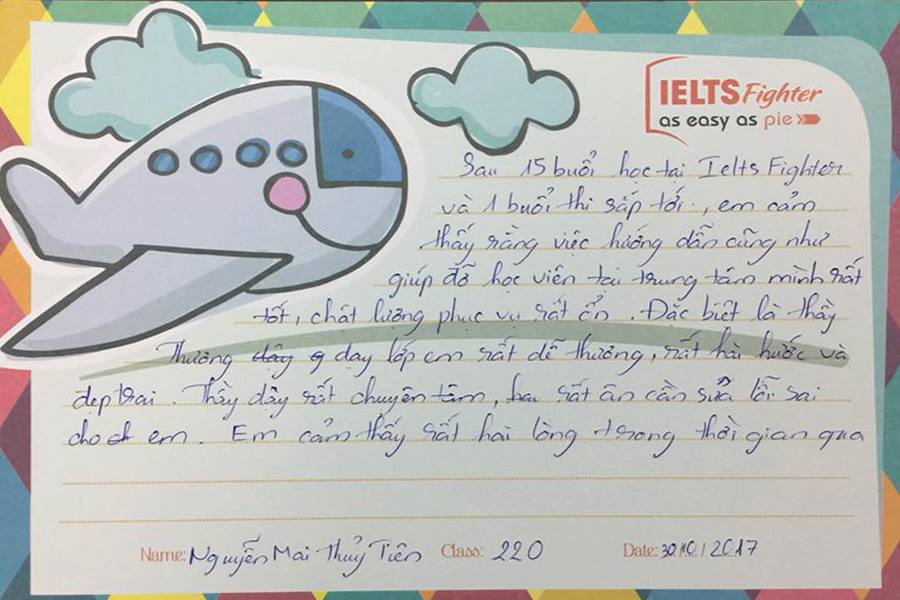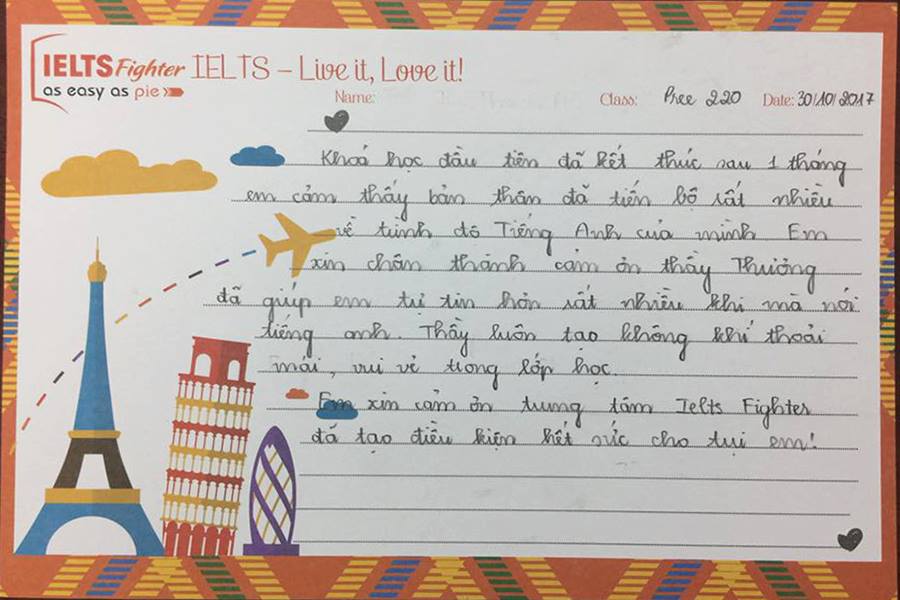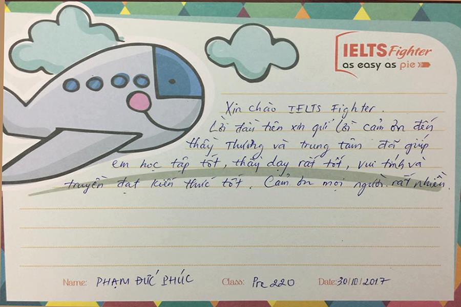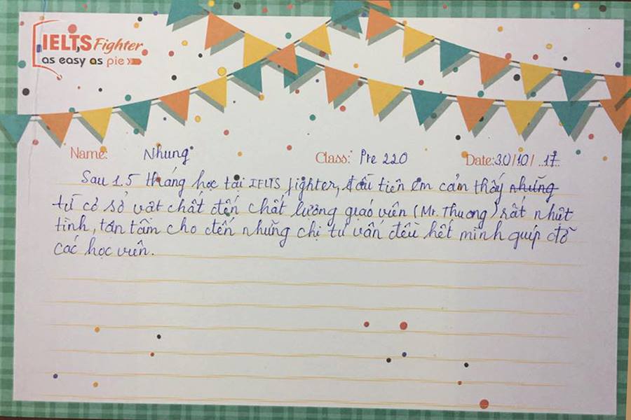 Em xin cảm ơn trung tâm IELTS Fighter đã tạo điều kiện hết sức cho tụi em!