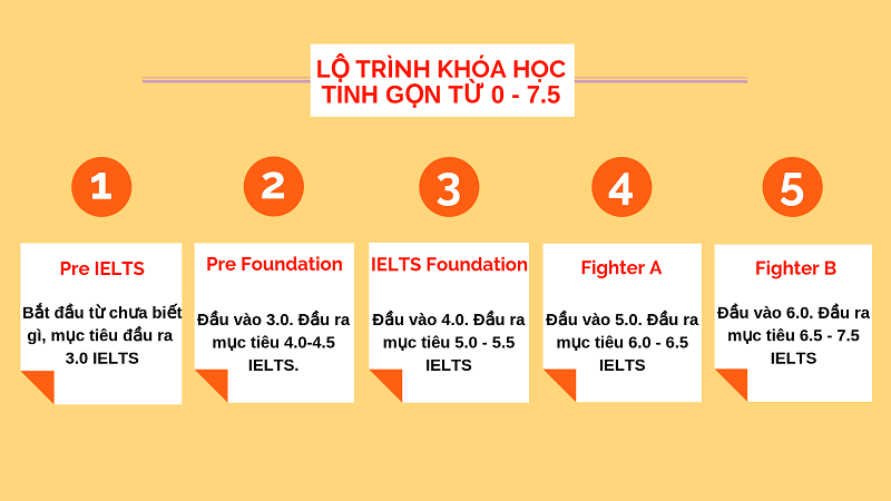 IELTS Fighter cung cấp lộ trình các khóa học dành riêng cho mỗi cấp độ mà bạn có thể lựa chọn như sau.