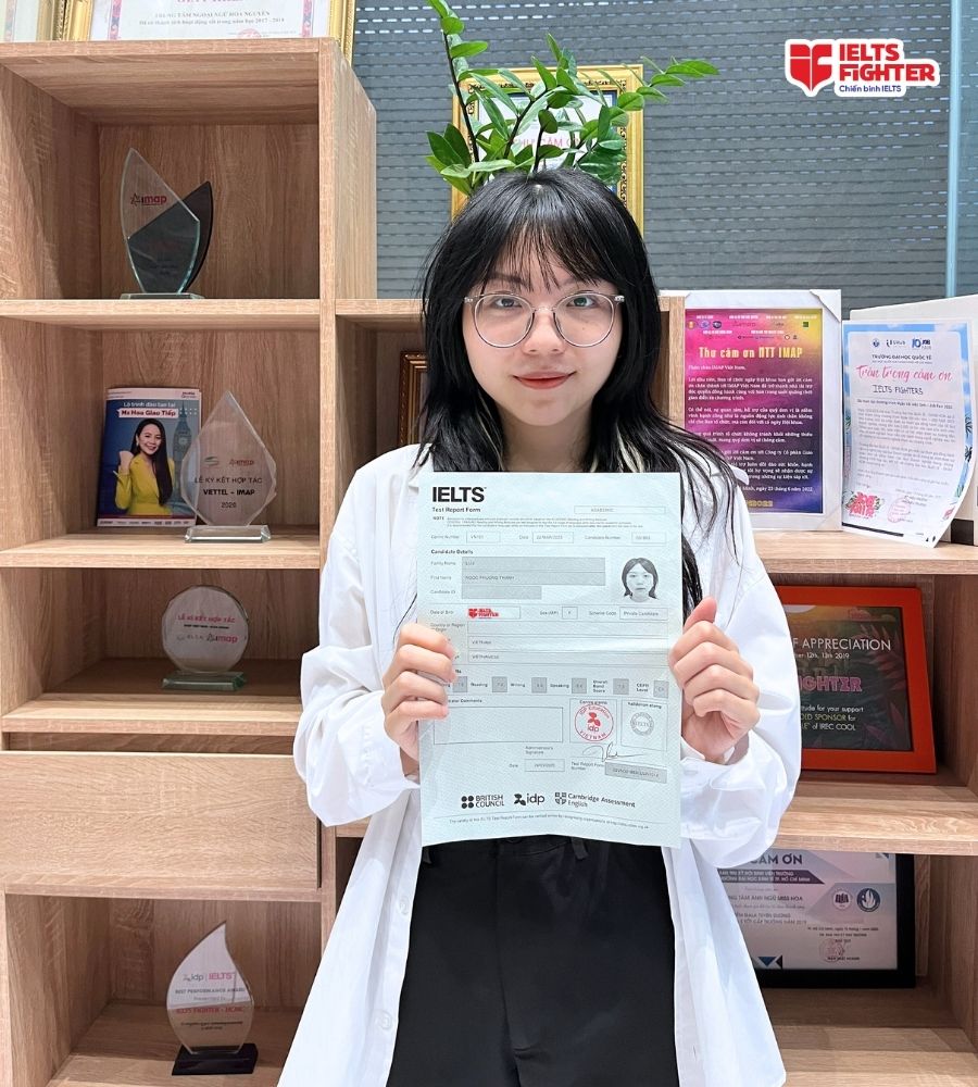 “Hello mọi người, mình là Phương Thanh, học lớp của thầy Hoàng cơ sở IELTS Fighter Nguyễn Thị Minh Khai. Gần đây mình vừa nhận được kết quả thi và đạt được 7.0 overall.