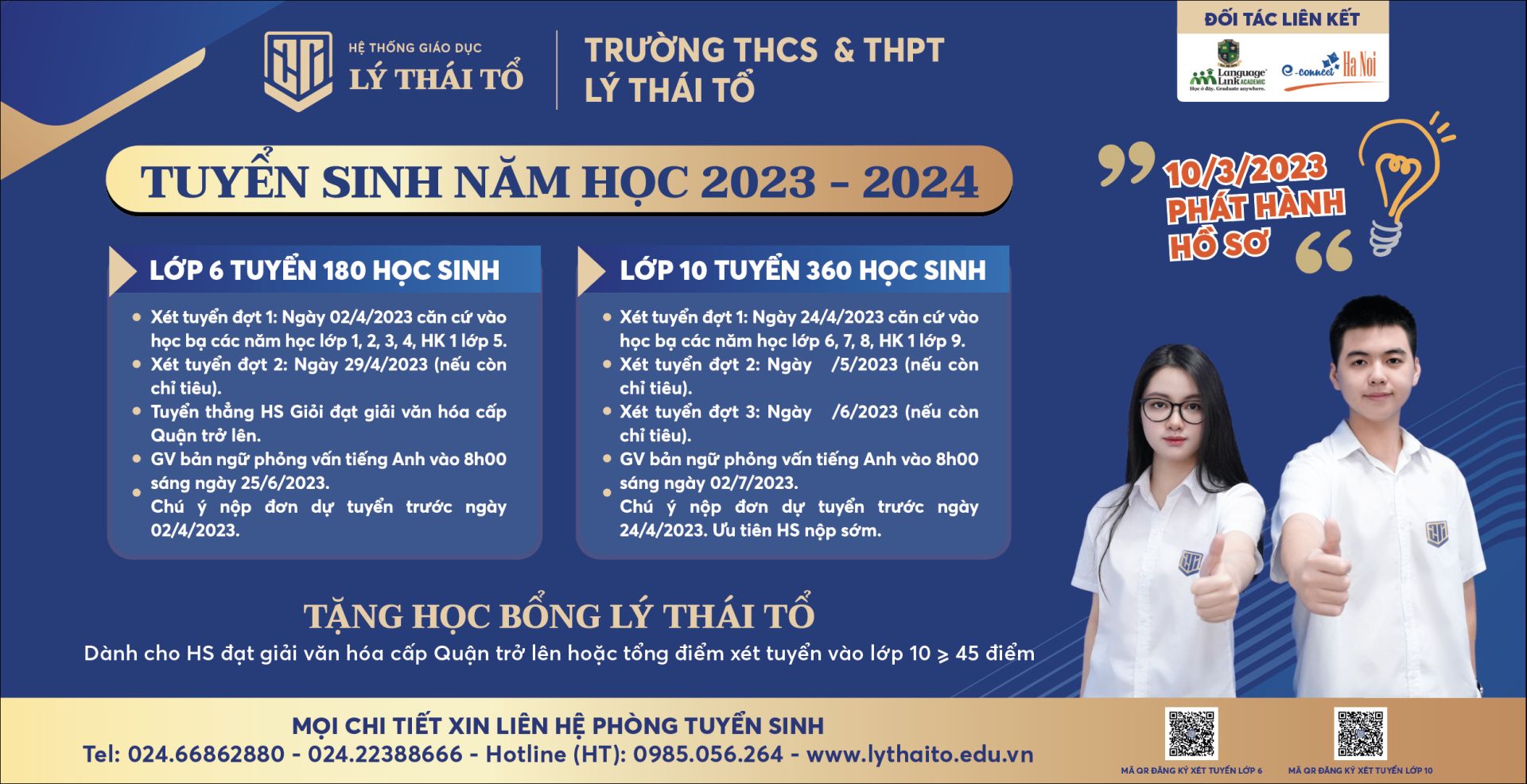 Lưu ý: Các học sinh học từ THCS xét tuyển lên THPT Lý Thái Tổ sẽ được ưu tiên.