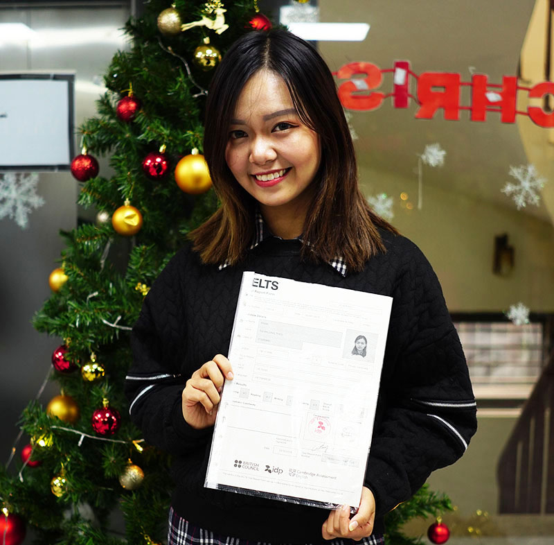 " Thảo thi IELTS lần đầu tiên trong đời vào năm ngoái và trộm vía đã đạt được 7.5 overall sau 2 tháng ôn luyện, cả tại trung tâm và tự ôn. Kết quả không phải quá cao nhưng cũng đủ để giúp mình tiếp tục những kế hoạch du học đã định hướng trong tương lai. Là kỳ thi đầu tiên nên không tránh khỏi những căng thẳng nhưng động lực điểm cao đã giúp mình vượt qua những chán nản và mệt mỏi đó."